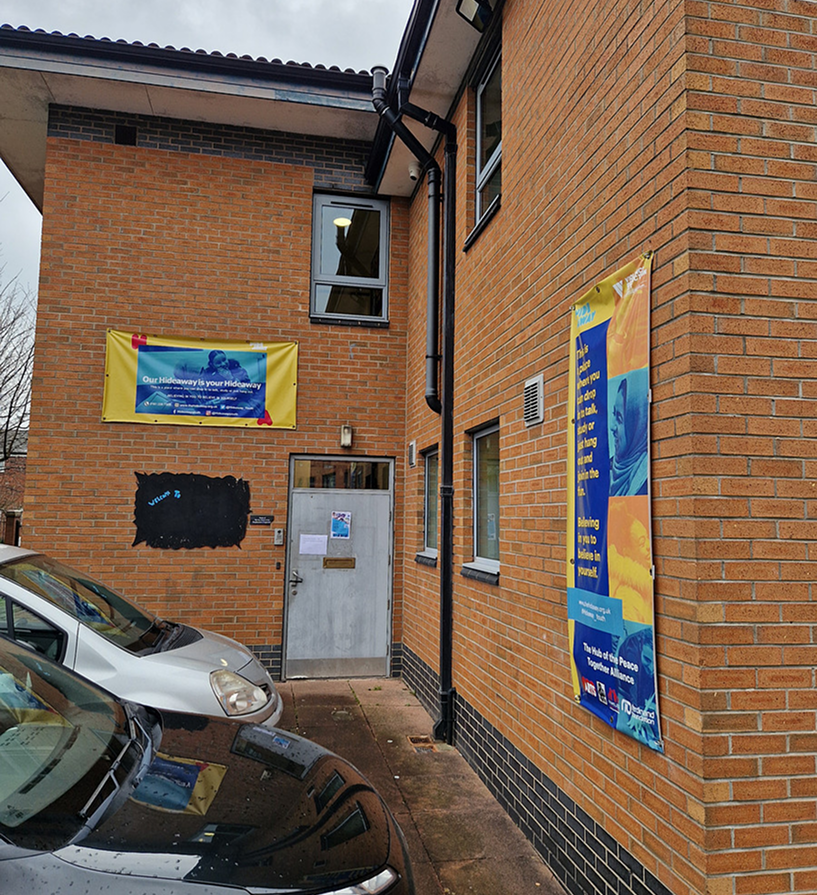You can find us at The Hideaway Youth Project, Quinney Crescent, M16 7DG. Our entrance is on Quinney Crescent—look for the blue door with our banners and posters outside. There is on-street parking available on Quinney Crescent, or you can use the car park via Moss Lane.